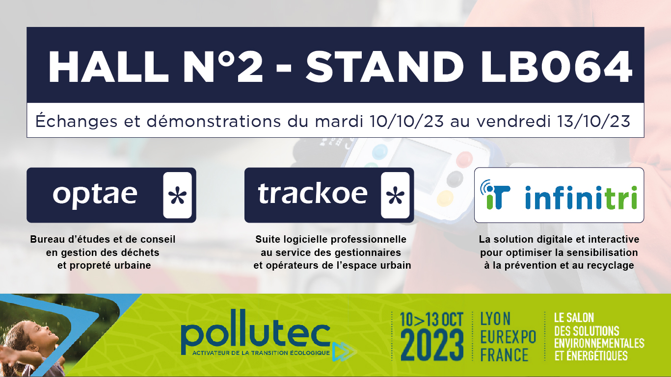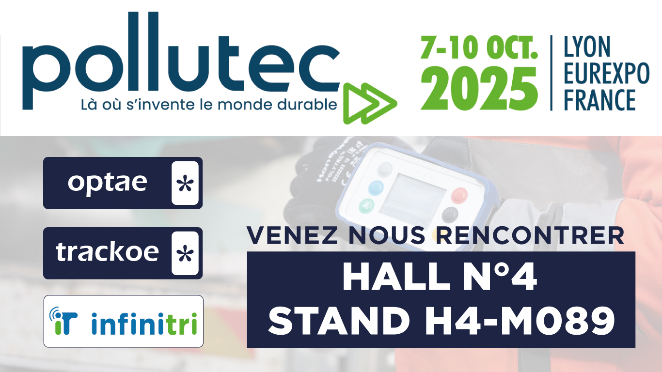 Trackoe est heureux de participer une nouvelle fois au Salon POLLUTEC 2023 à Lyon Eurexpo du 10 au 13 Octobre 2023 au stand N° H2-LB064.